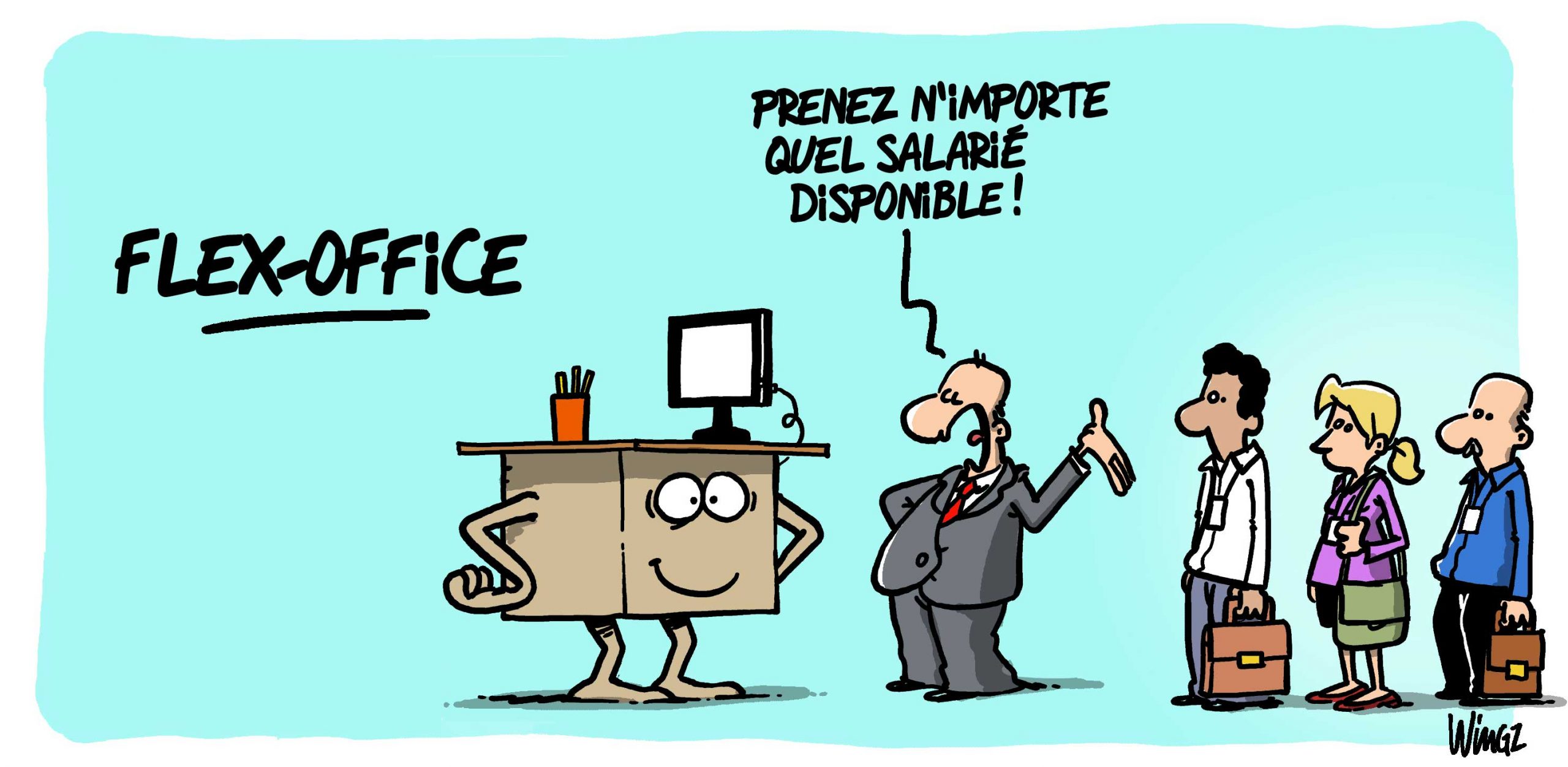 En conclusion, tous les aspects liés au Flex-office à savoir le transport permanent de son matériel, le problème de places, la vérification de son temps d’absence au risque de ne plus avoir de poste de travail, les difficultés pour déjeuner le midi sont générateurs de risques psycho-sociaux.