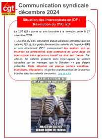 Situation des intercontrat en IDF - Résolution du CSE I2S - … Et la caravane passe !!! - Bulletin de salaire de novembre pour les salariés en modalité 2...