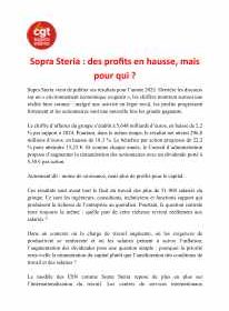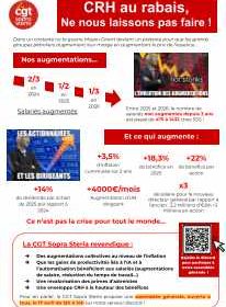 Malgré des profits en hausse, les augmentations sont restées extrêmement réduites et inégales. La CGT Sopra Steria appelle les salariés à s’organiser pour faire entendre leurs revendications lors de l’assemblée générale du 17 avril, de 12h à 14h, sur...