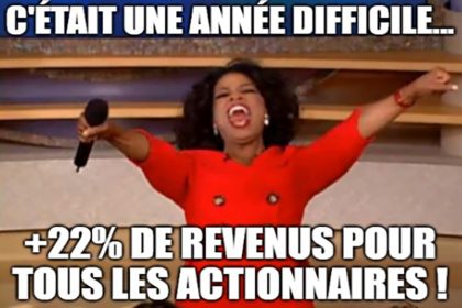 Pour expliquer la faiblesse de l’enveloppe CRH , le PDG affirme que « sans dividendes, la société est à vendre » et la direction constate un désengagement des salariés !!! Manifestement, ils n’ont pas fait le lien entre ces deux constats&nb...